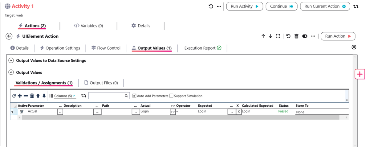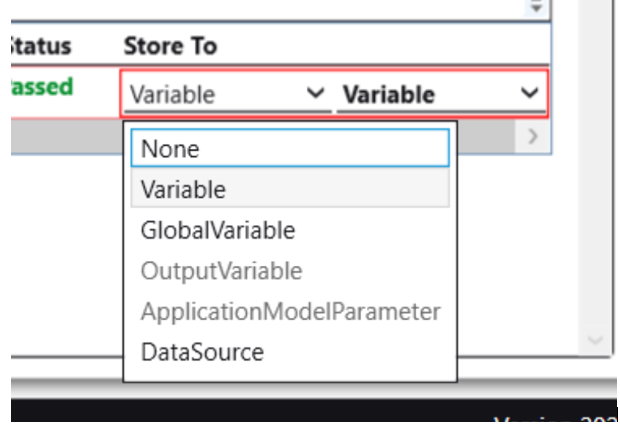 - When the Action is Run and Passed, the output value will be stored in the selected variable.