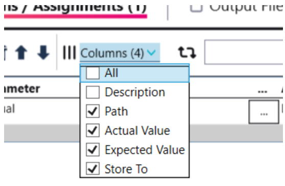 And the output values gets saved only when there is value in Expected or in Store To. Below is the output value screen.