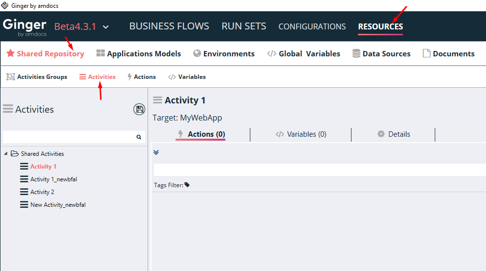 - Go to Resources Tabà Shared Repository à Activities Tab