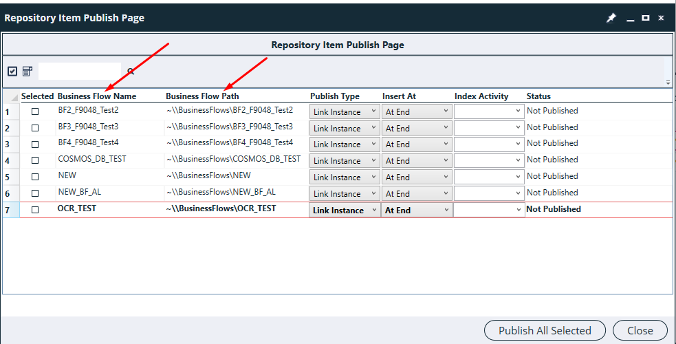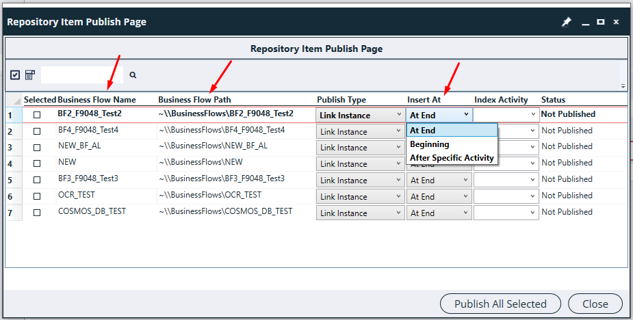 - A new window will be opened. This will display all the business flows where selected activity is not present.