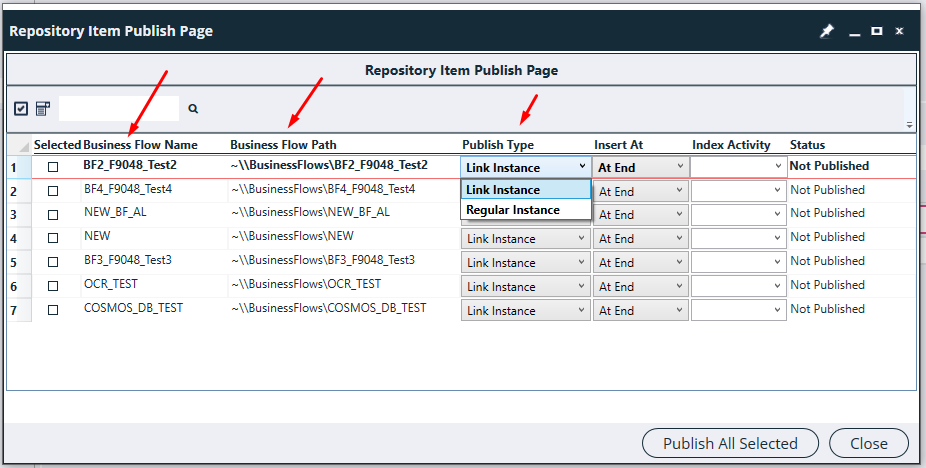 - Select the option of Publish Type as Link Instance / Regular Instance