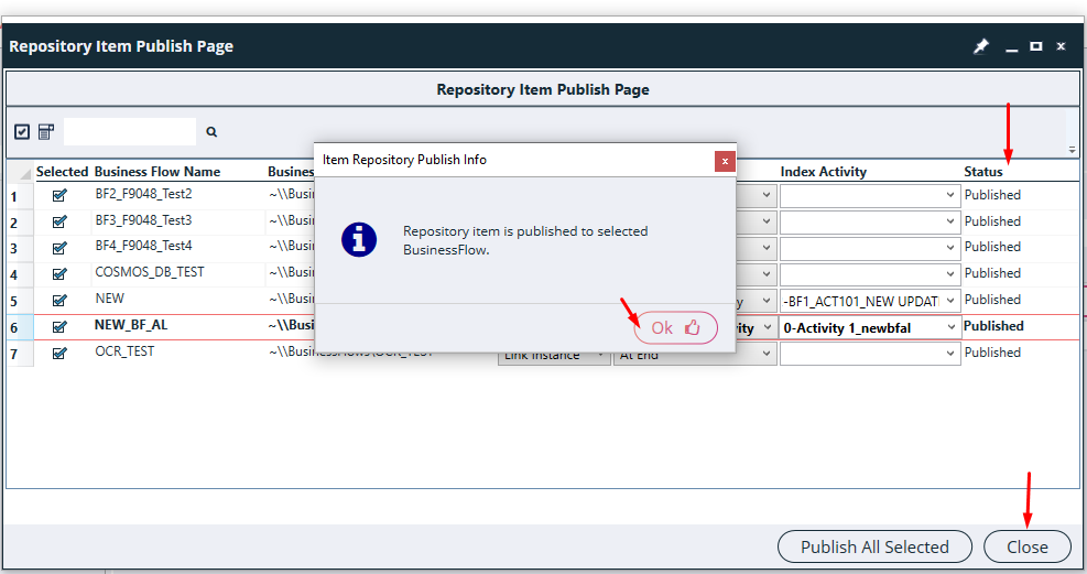 Upload Modified or Changed items from Business flows to Shared Reposioty