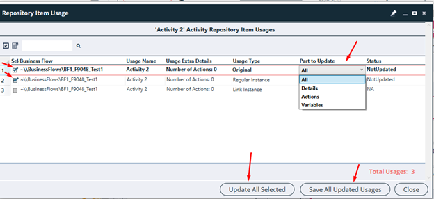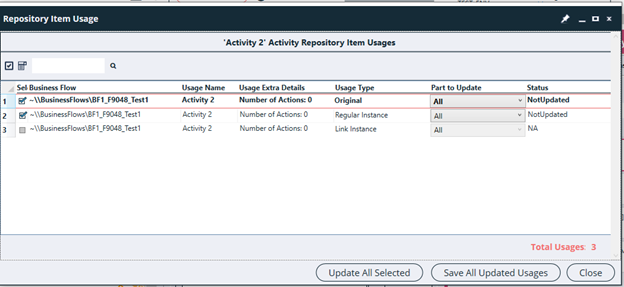 - Click on the ‘Update All Selected’ to publish changes to selected usages