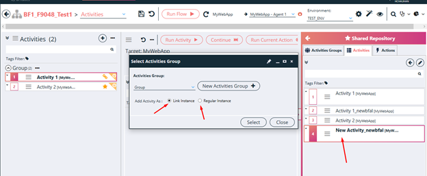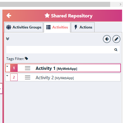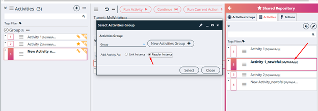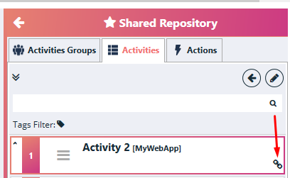 - Once the Activity is added to the Shared Repository, the ‘Link icon’ near the Activity will be displayed in Orange Color