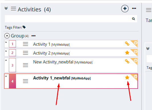 - For the Activity pulled as Regular instance, The ‘Star icon’ near the Activity will be displayed in Orange Color